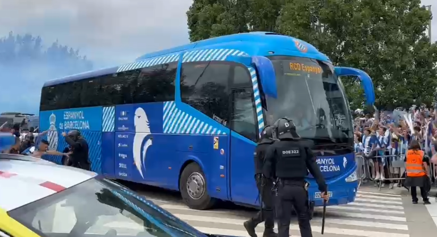 VÍDEO | El espectacular recibimiento de la afición al autocar del equipo antes del Espanyol – Oviedo