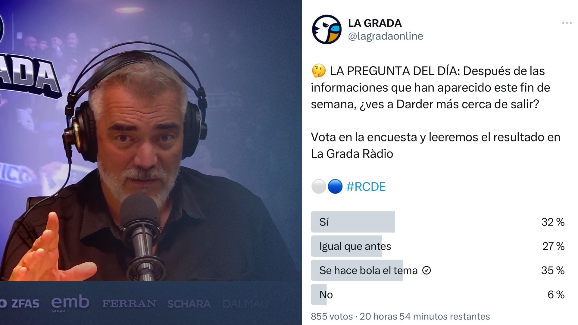 Jordi Lardín analiza la crisis del Espanyol y avisa del peligro; claro sobre dinámica, descenso y la situación de Garagarza y la dirección deportiva, que tilda de “anormal”