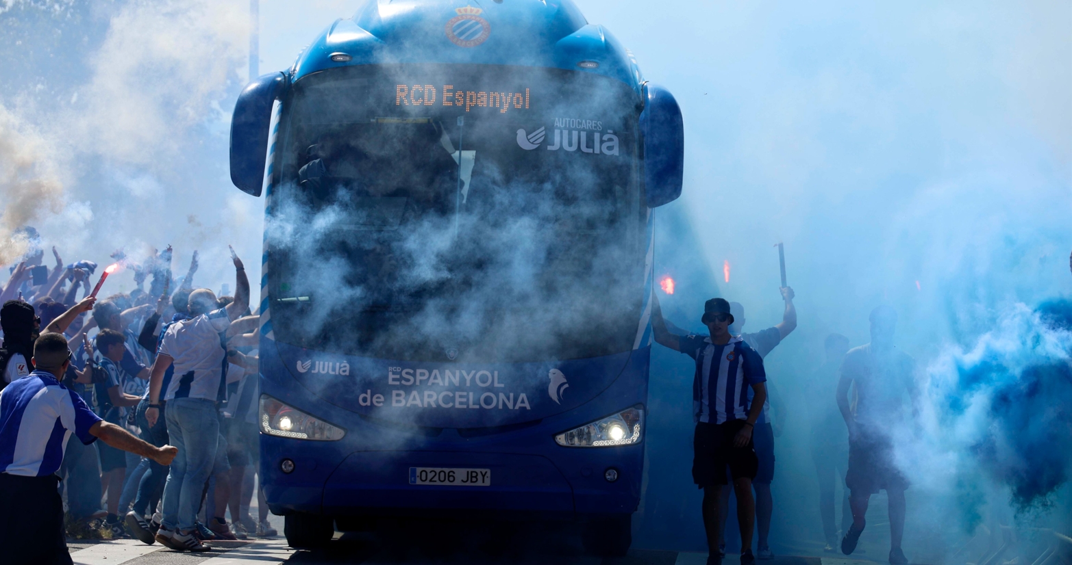 La afición del Espanyol responde a lo grande: multitudinario recibimiento al equipo antes de la final ante Las Palmas