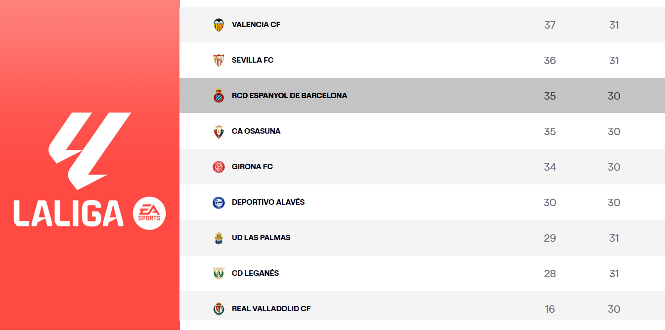 LaLiga EA Sports | Las claves de la jornada 31: Vigo, siguiente estación del camino a la supervivencia para el Espanyol