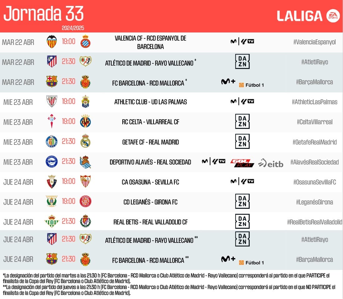 Horario y dónde ver el RCD Espanyol – Atlético de Madrid de la jornada 29 de LaLiga EA Sports 2024-25