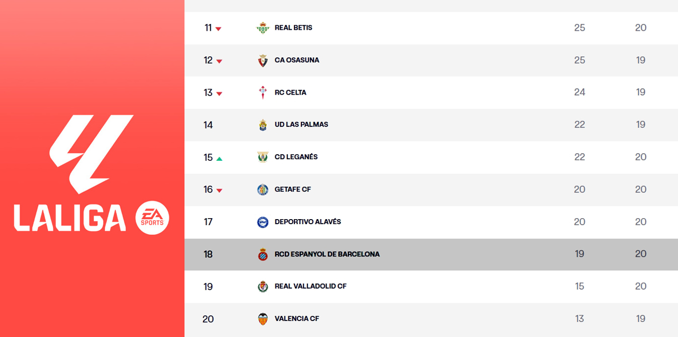LaLiga EA Sports | El Espanyol duerme fuera del descenso, muy atento a lo que hagan este sábado sus rivales