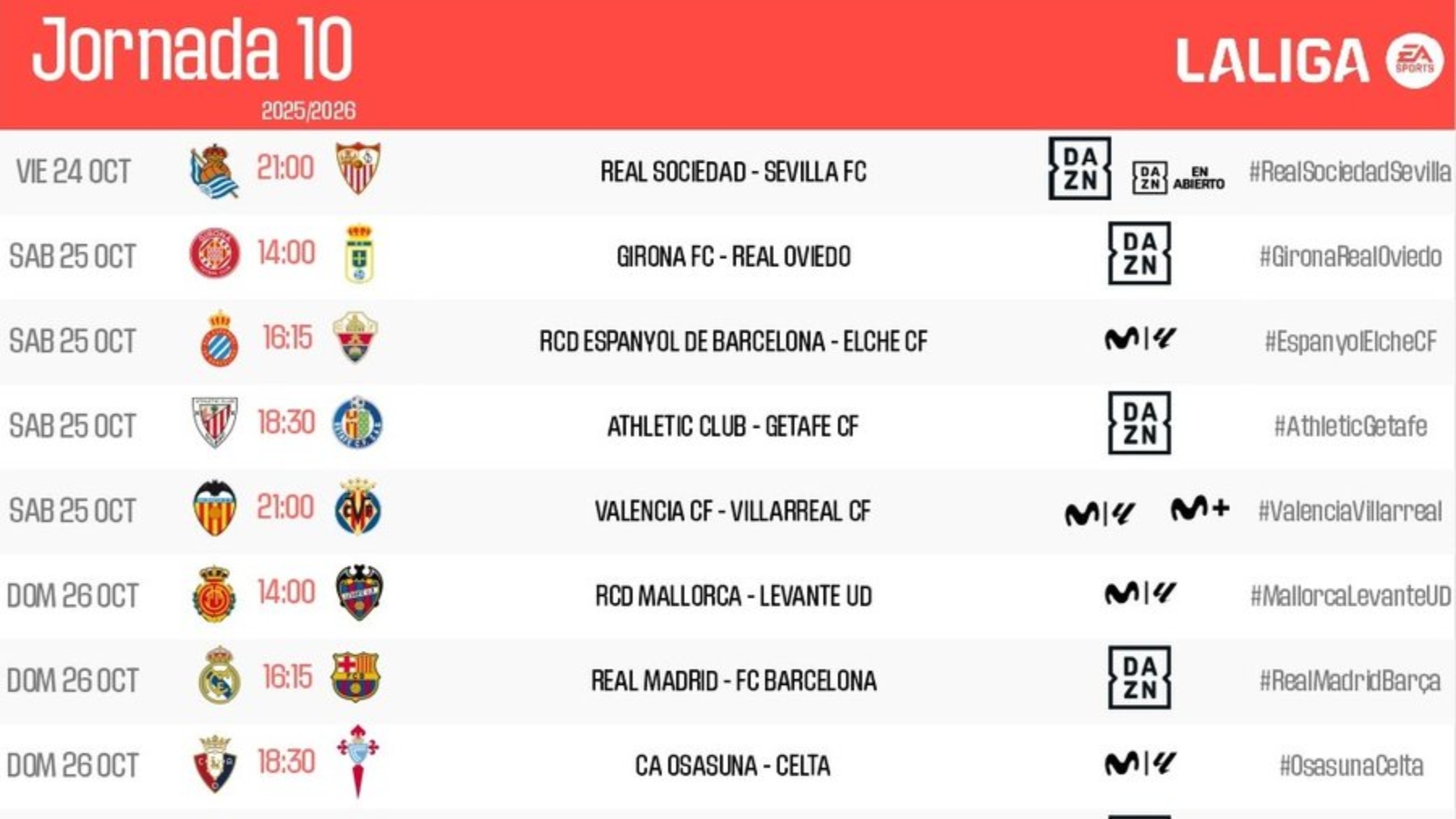 Espanyol – Elche, sábado 25 de octubre a las 16:15 en el RCDE Stadium: así quedan los horarios de la jornada 10