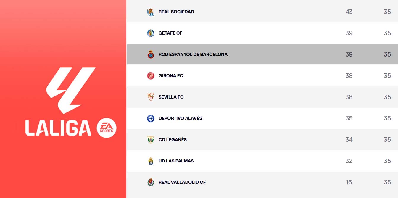 LaLiga EA Sports | Girona y Sevilla se acercan a la permanencia y de momento superan al Espanyol en dos puntos; la UD Las Palmas, a un paso de Segunda
