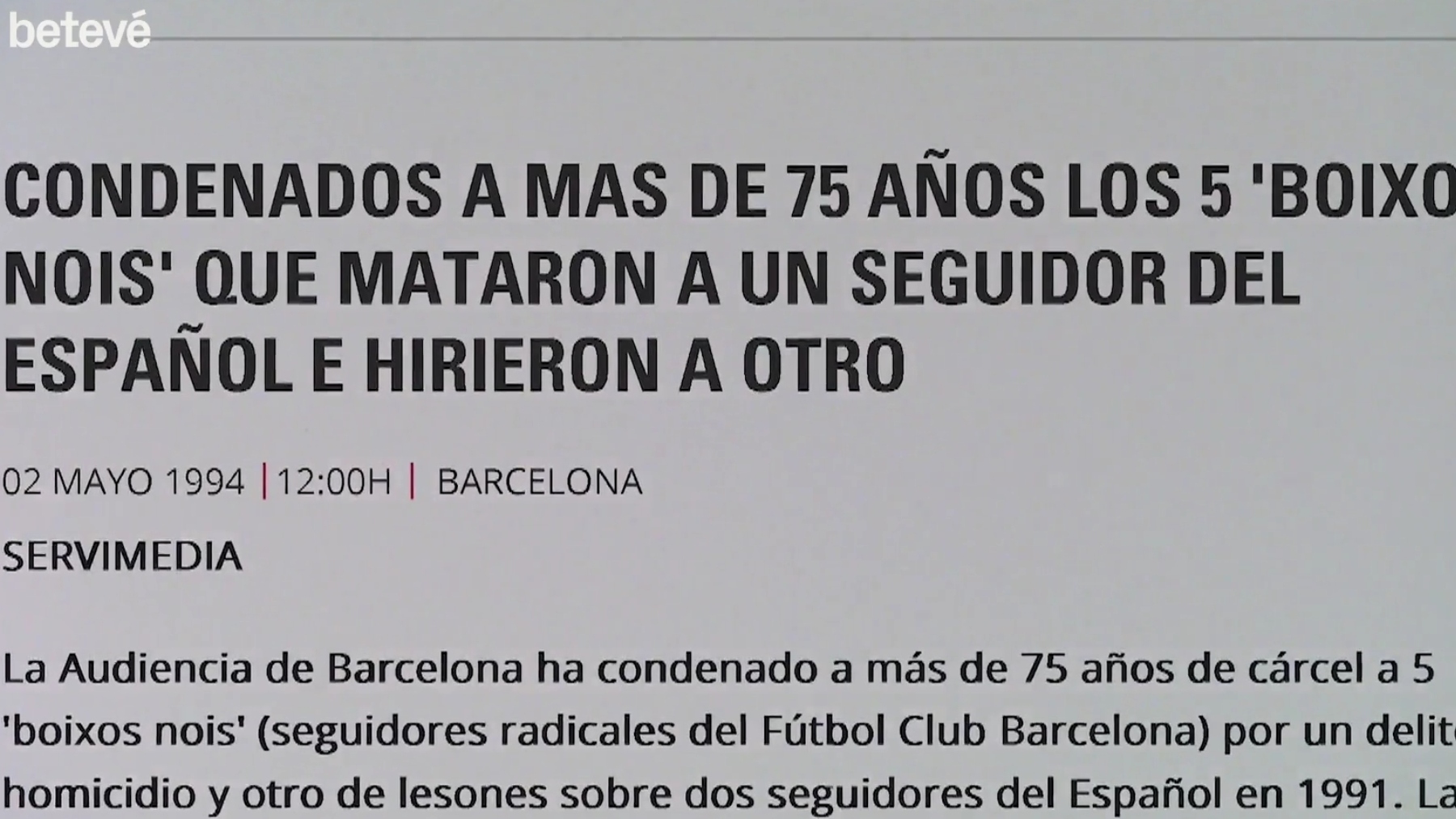El programa de crónica negra ‘BCN Confidencial’ reconstruye el asesinato del seguidor del Espanyol Frédéric Rouquier a manos de miembros de los Boixos Nois en 1991
