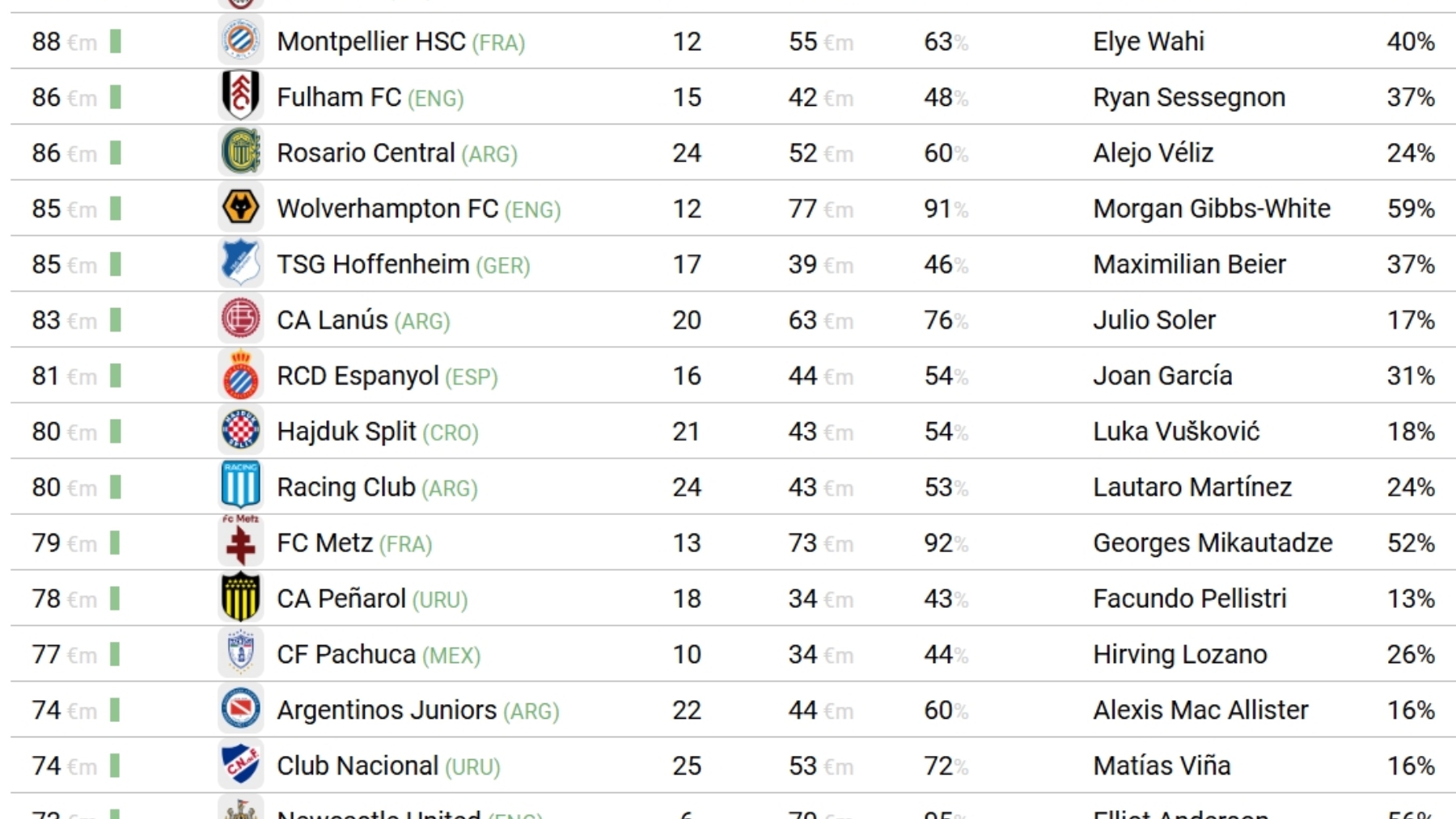 En esa misma línea aparecen otros nombres relevantes como Olympique de Lyon, Sporting CP o Manchester City, todos ellos con cifras muy elevadas y con una política clara: formar, proyectar y vender en el momento adecuado.