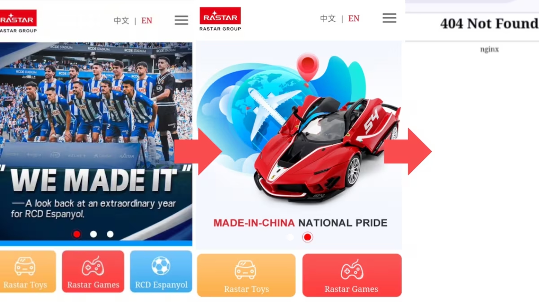 Hasta hace muy poco, la web de Rastar tenía una sección entera dedicada al Espanyol. Hoy, nada. En su versión inglesa y también en la china, ya solo aparecen las divisiones de juguetes y videojuegos. El club blanquiazul ha sido eliminado con un “Error 404” literal, que salta al intentar acceder al antiguo enlace. También se ha esfumado Chen Yansheng, cuya firma seguía apareciendo hasta hace poco. Ahora la web está firmada por su hijo, Chen Chuanghuang.