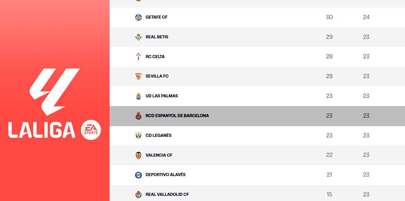 LaLiga EA Sports | El Espanyol vuelve provisionalmente a zona de descenso, adelantado por el Valencia